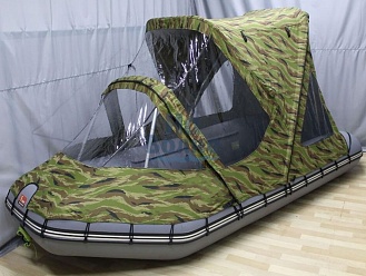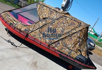 Полноценный ходовой тент на основе комбинированного тента и тента трансформера. Особенностью является наличие люка-бойницы в крыше для охоты из лодки